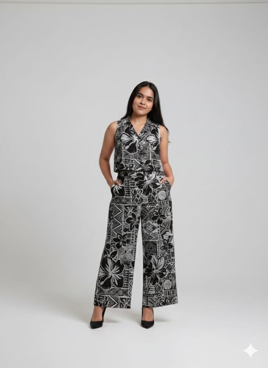 Summer vibe pink printed co-ord set – black, FREE