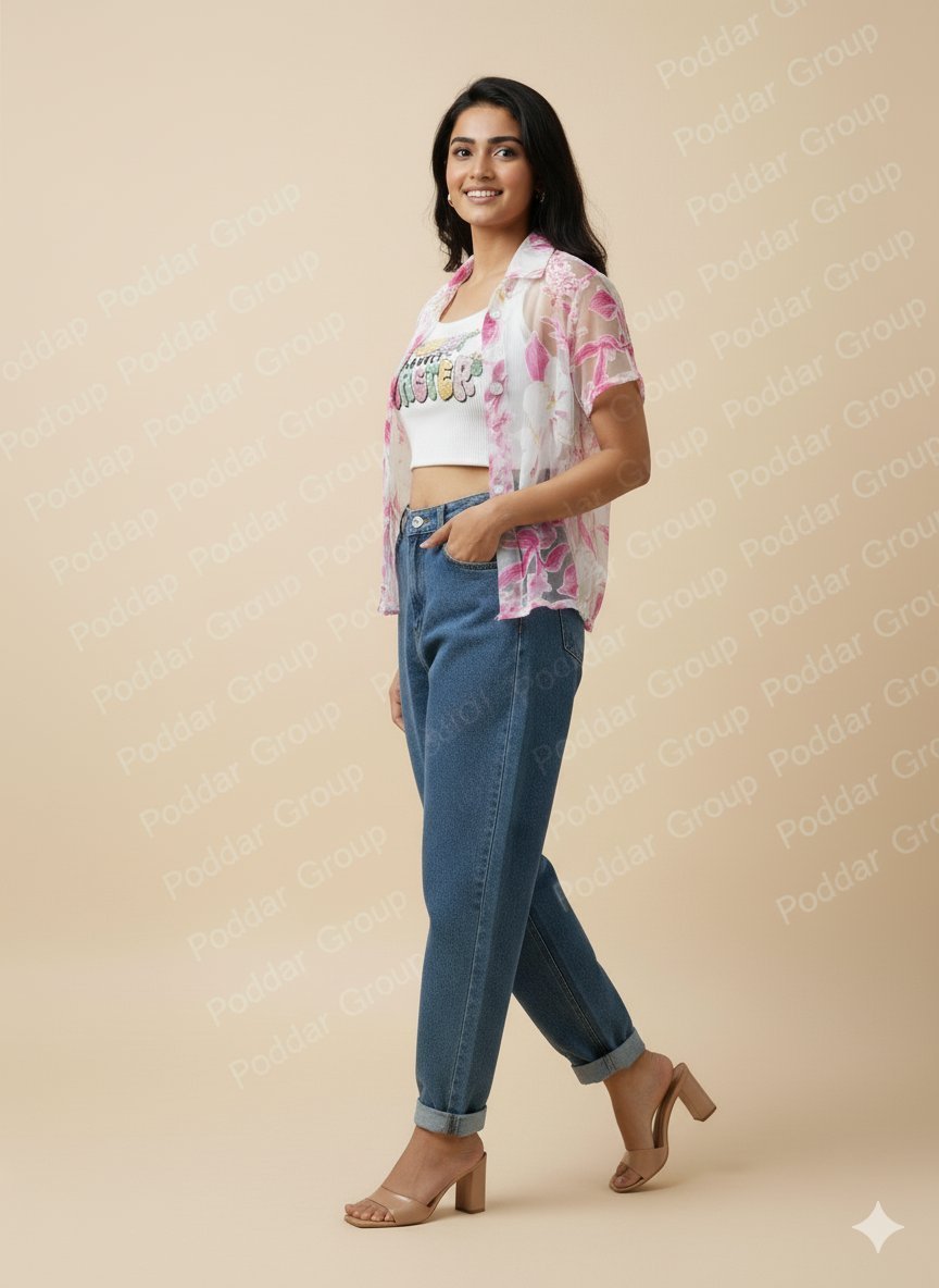 Step into effortless style with this White Ribbed Crop Top paired with a Pink Floral Sheer Shrug. The crop top features a trendy graphic print for a playful vibe, while the lightweight floral shrug adds a touch of elegance and freshness. Perfect for casual outings, brunch dates, or layering over your favorite bottoms, this duo combines comfort with chic style.
